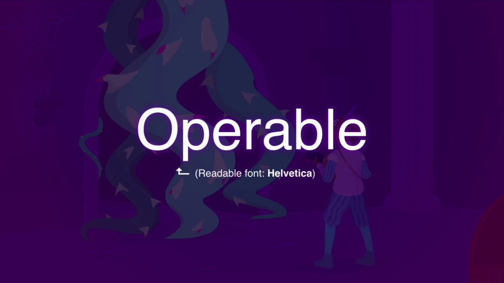 We fade to the next scene, with a title card that reads: “Operable. Readable font: Helvetica”.