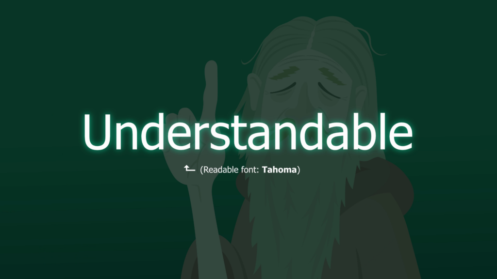 We now fade to a title card that reads “Understandable. Readable font: Tahoma”.