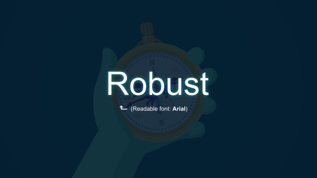 We fade into another title card that reads: “Robust. Readable font: Arial”.
