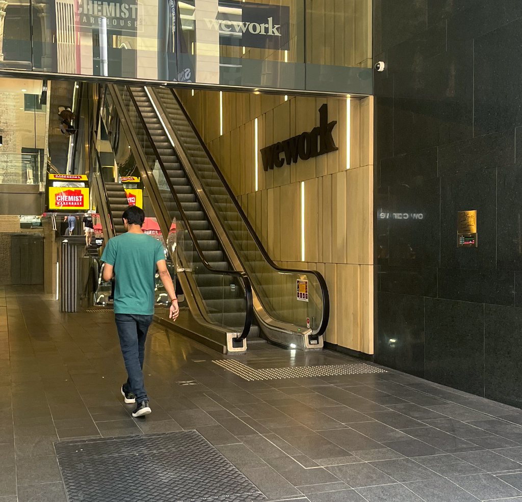 Head up to Level 2 via the escalator to reach the WeWork reception. Check in at the main desk, and one of our team will come to meet you.